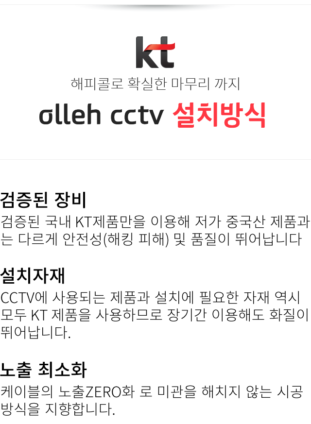 아니요. KT 올레 CCTV IoT 상품은 모두 무선으로 연결되며 인테리어 손상이 없습니다.
